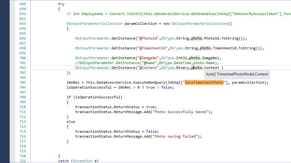 Web server that hosted mobile services, will receive this and it will save those details and picture in ingres DB.