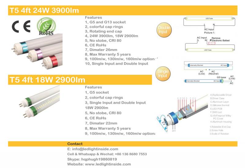 T5 24W LED tube 3900lm to replace traditional T5 54W fluorescent tube light