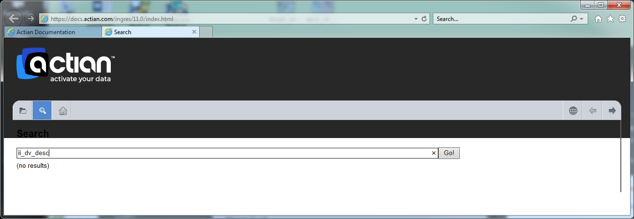 > select ii_dv_desc(min(a)) from session.test Executing . . .
