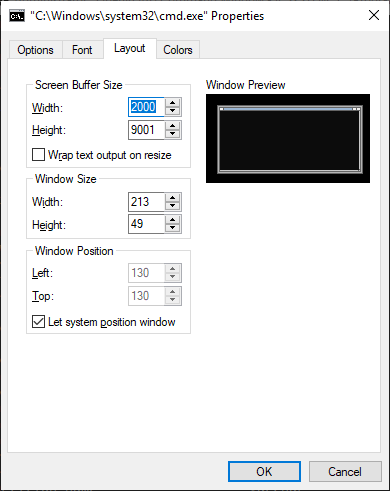 prompts so that the Screen buffer size has a width of 2K which helps to keep